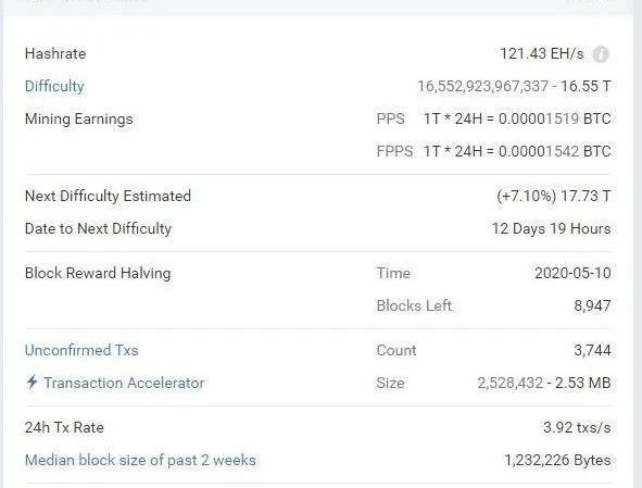 比特币链上算力数据据比特币价格.com资料,比特币网络已在昨日完成新阶段的挖矿难度升级,达到16.55T等级,而当前算力也有121.43EH/s,预计减半时间仍维持在2020年5月10日进行。这代表,受疫情影响,投资者对减半行情仍有迟疑,但矿工却为减半做好充分的准备。双方的温度差是否会影响比特币减半行情的表现?就让我们看下去!