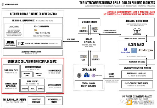 随着越来越多的准备金涌入金融体系,受担保的美元融资体系(SDFC)逐渐取代了未担保美元融资体系(UDFC)。监管机构决定要求银行不再互相依赖来融资,这意味着从影子银行在回购市场获得贷款,同时吸引更多的零售存款——这是最便宜、最符合监管要求的融资来源。