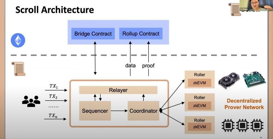 近日,Scroll的联合创始人张烨受邀参加了斯坦佛的区块链研讨会,分享了Scroll的架构设计和挑战。在演讲的前半部分,介绍了Scroll的整体架构,并重点介绍其一些特殊的设计选择。